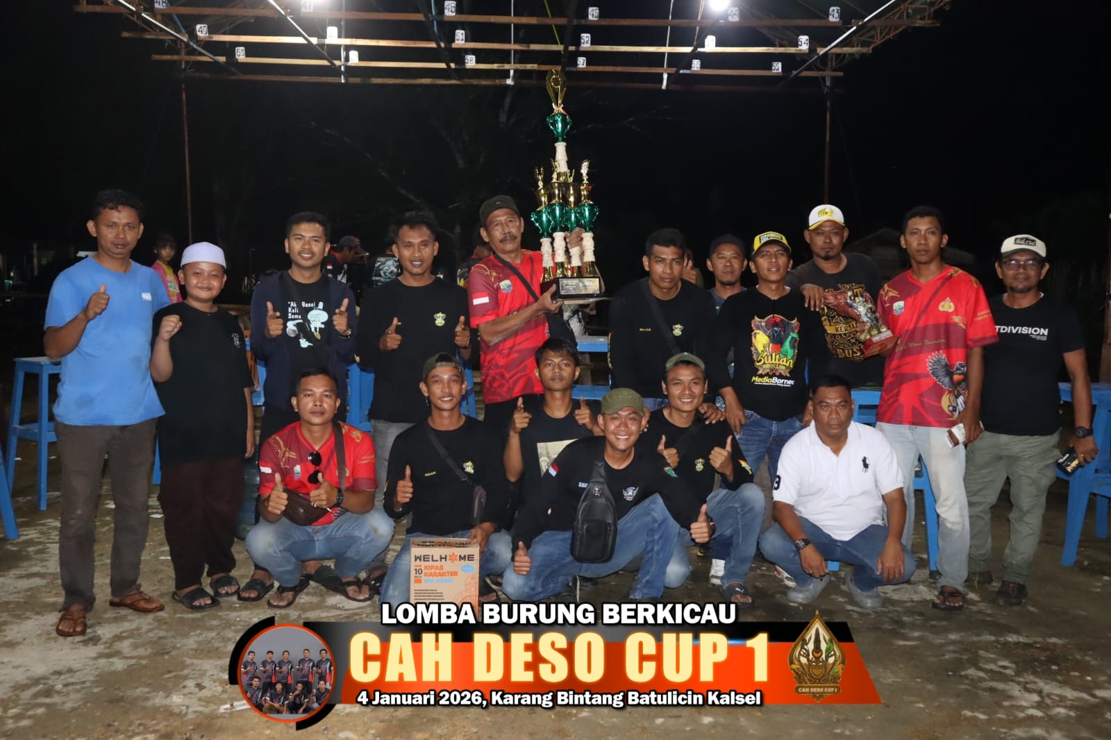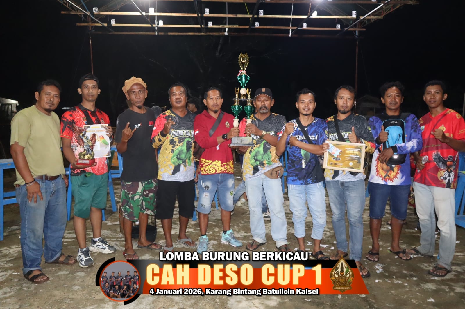 mediabnr.com – Kalsel. Tuntas sudah lomba kicauan bertitel “ CAH DESO CUP 1 “ (4/1) bertempat di Karang Bintang Kota Batulicin Kab. Tanah Bumbu Kalsel berlangsung begitu semarak dan sukses besar berkat dukungan penuh kicaumania dengan kawalan Kru Juri Independent.
