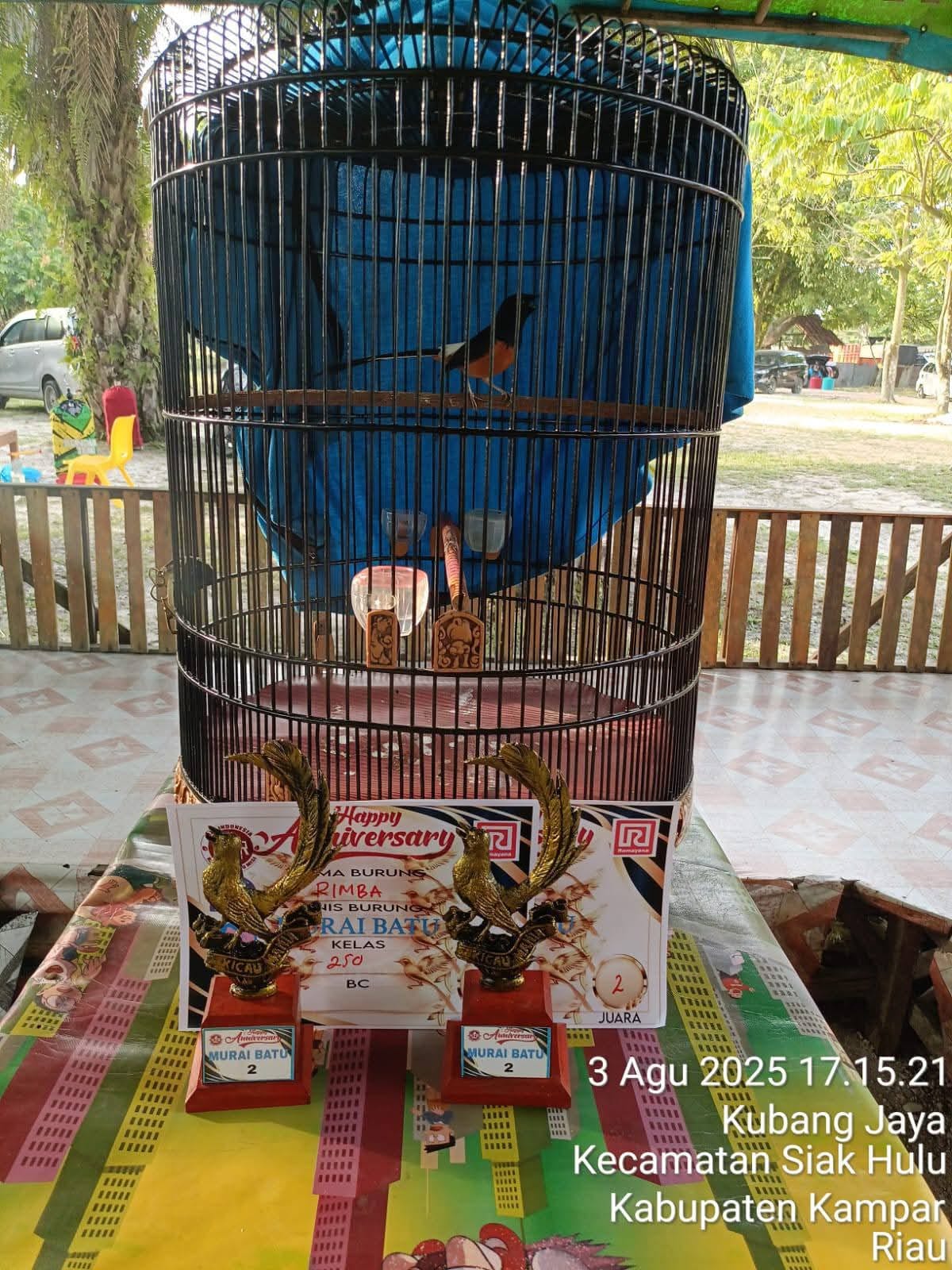 mediabnr.com – Pekanbaru. Murai Batu Rimba milik Pak Dadang tampil di acara Anniversary NZR Riau, minggu (3 Agustus 2025) di Gantangan GSN, Jl. Kubang Raya Pekanbaru. Rimba tampil cukup stabil pada tiap kelas yang diikuti dan berhasil meraih dua kali juara 2.