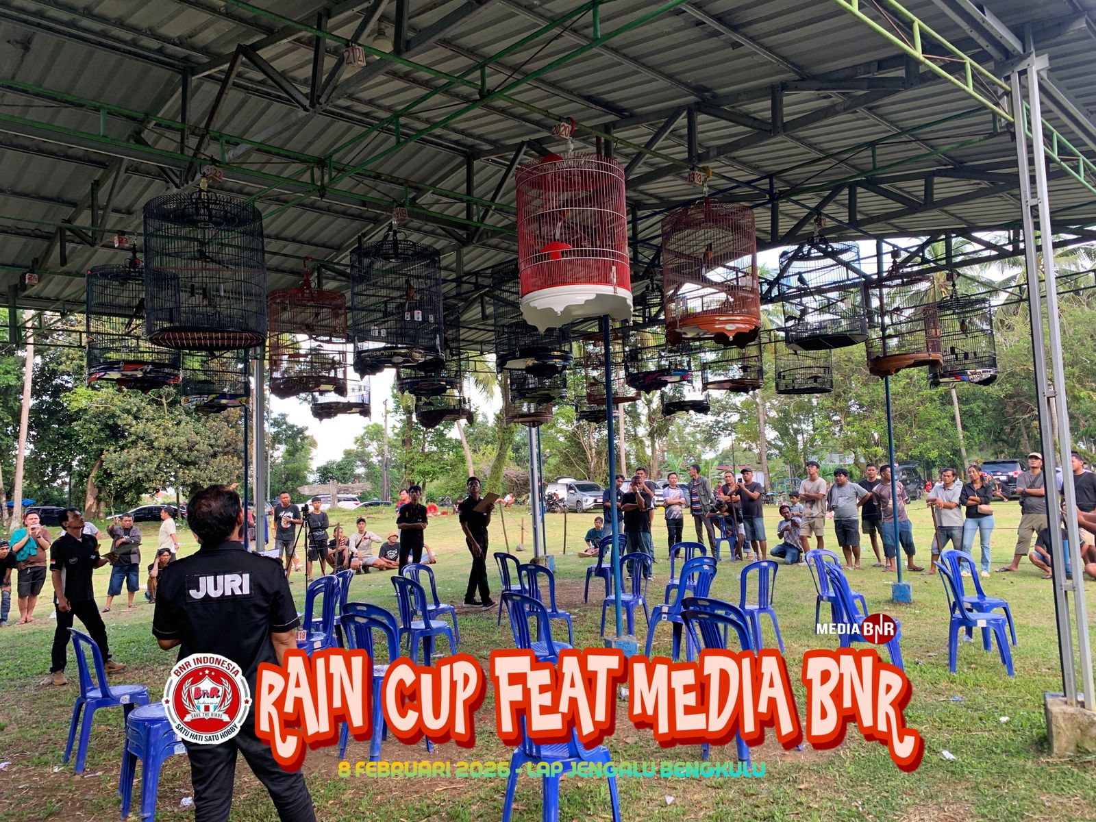Mediabnr.com – Event perdana lomba BnR di tahun 2026 ini sukses terselengara. lomba yang bertajuk Rain cup feat media BnR minggu 8 februari 2026 di padati peserta kicau mania antar daerah.